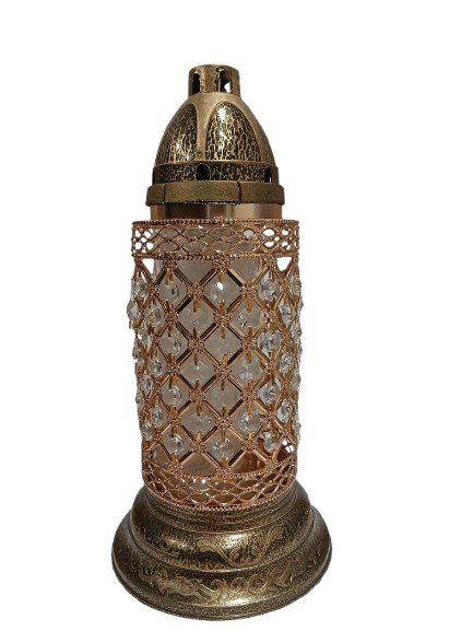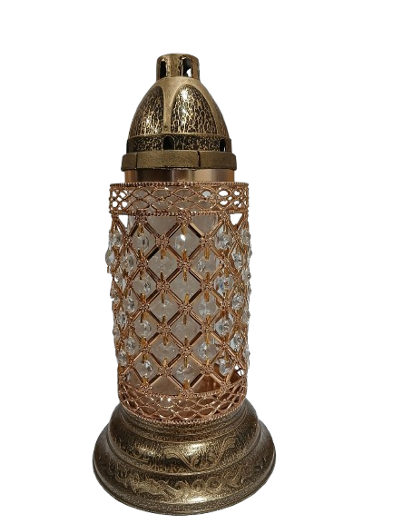 Kryształki z dodatkowymi zdobieniami w metalowym szkielecie znicza, dodają elegancji i zapewniają o wyjątkowej prezentacji znicza w każdych warunkach.