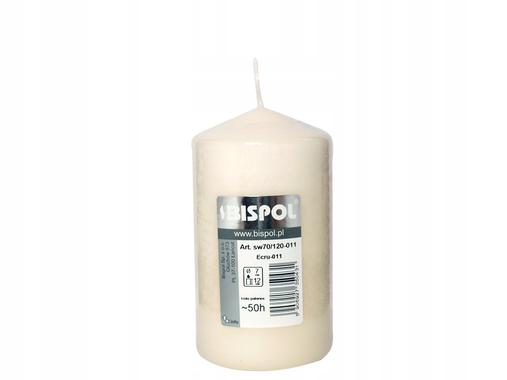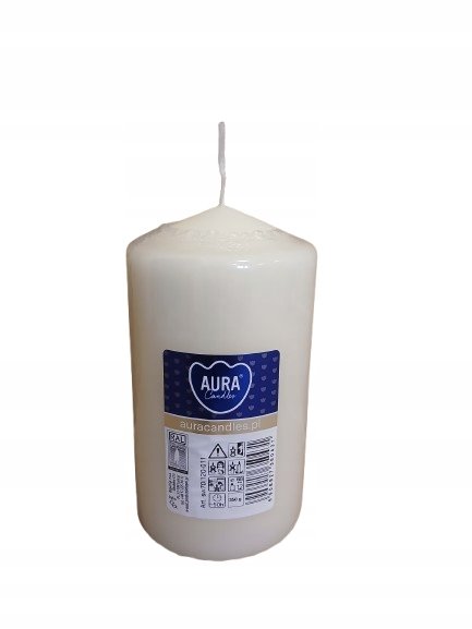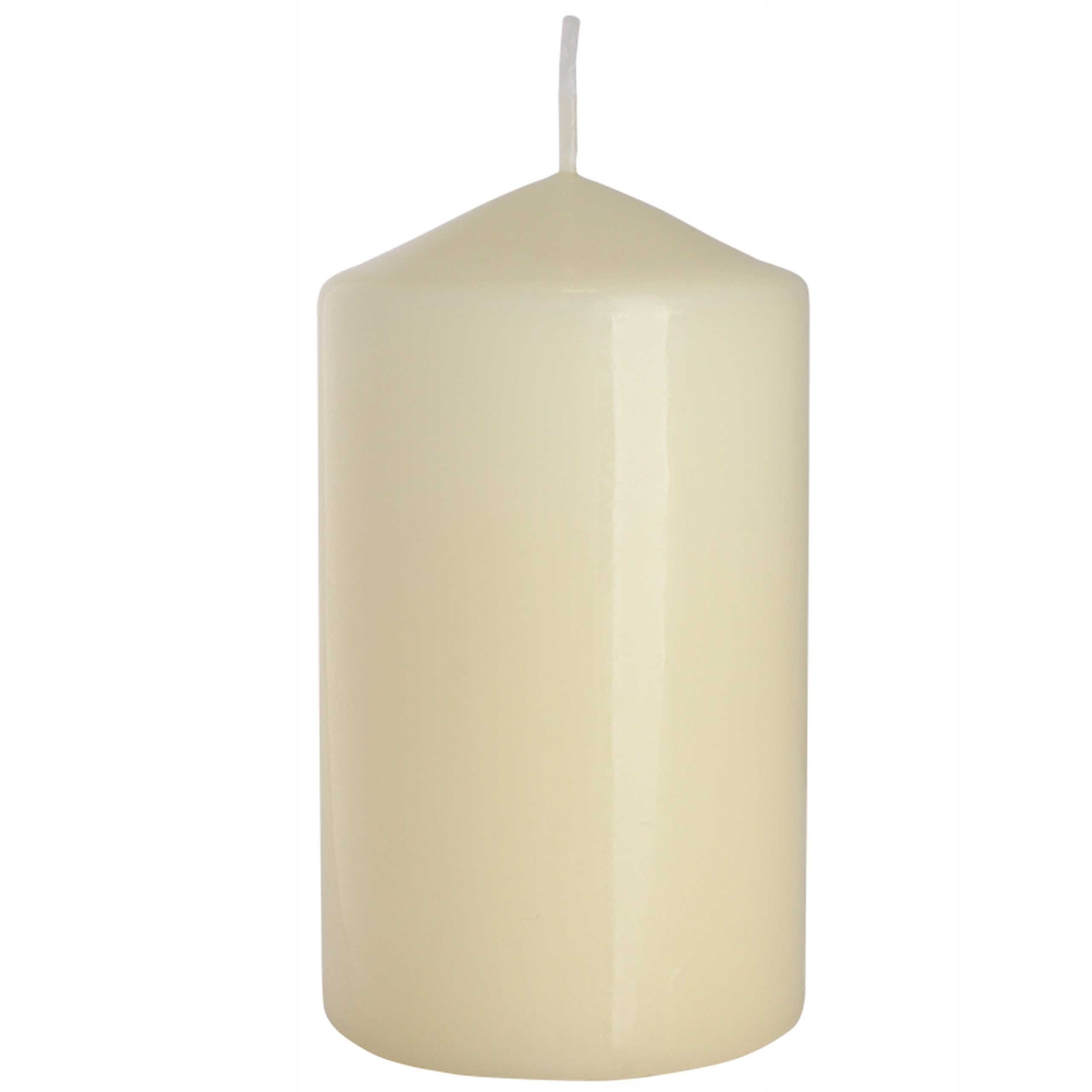 Świeca walec o czasie palenia 50 godzin. Elegancka i ponadczasowa świeca ozdobna walec ma 12 cm wysokości i około 6,8 cm średnicy.