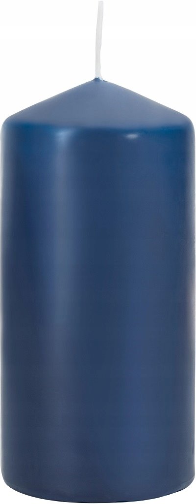 Granatowa świeca dekoracyjna w kształcie walca, bezzapachowa o wysokości 12cm, średnicy 5,8cm i czasie palenia do 38 godzin BISPOL.