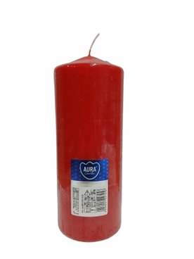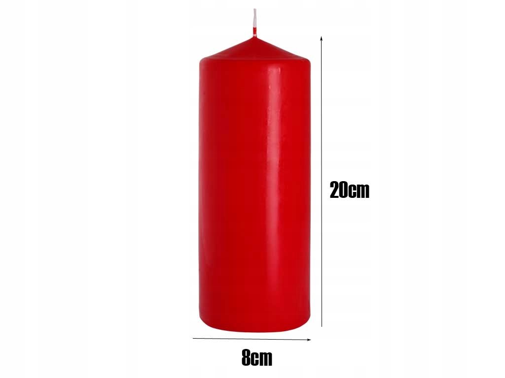 Czerwona świeca dekoracyjna w kształcie walca, bezzapachowa o wysokości 20cm, średnicy 7,8cm i czasie palenia do 90 godzin BISPOL.