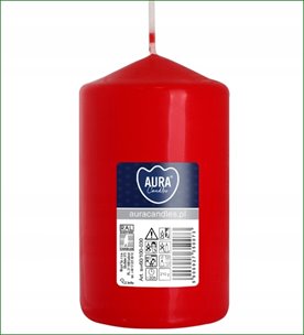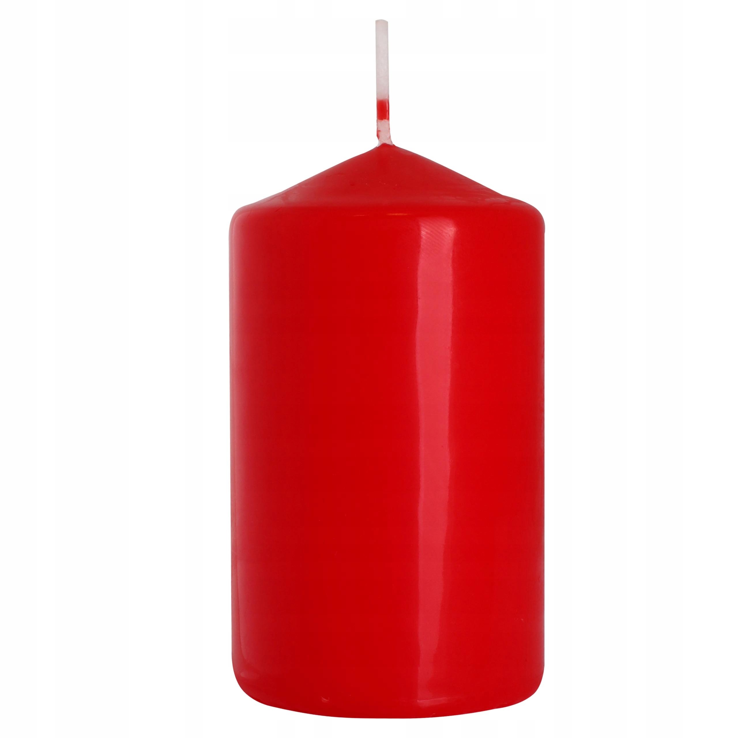 Czerwona świeca dekoracyjna w kształcie walca, bezzapachowa o wysokości 10cm, średnicy 5,8cm i czasie palenia do 30 godzin BISPOL.