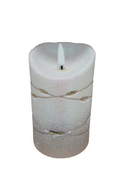 ŚWieczka dekoracyjna z srebrnym brokatem i Łańcuszkiem LED jest doskonałym, ekologicznym wyrobem, wykonanym w oparciu o technologię LED.