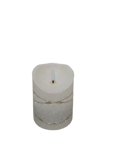 Świeczka dekoracyjna z srebrnym brokatem i łańcuszkiem LED jest doskonałym, ekologicznym wyrobem, wykonanym w oparciu o technologię LED.