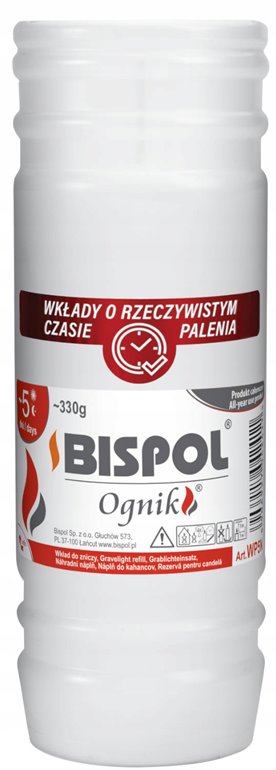 Prezentowane wkłady do zniczy Bispol produkowane są przez wiodącego Polskiego producenta świec, podgrzewaczy, wkładów i zniczy jednego z Europejskich liderów. Wieloletnie doświadczenie oraz rozwój firmy Bispol spowodował, że produkty spełniają oczekiwania nawet najbardziej wymagających klientów. Doskonała jakość, estetyczne wykonanie produktów oraz wysokie standardy produkcji to atuty producenta.