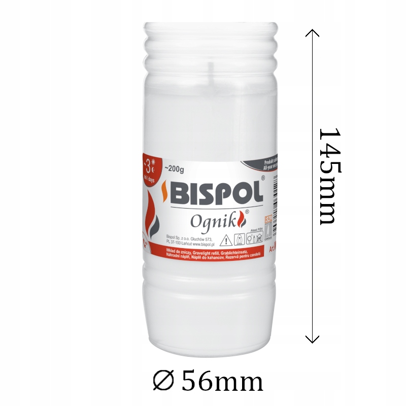 Wkłady parafinowe Bispol Ognik są dobrym rozwiązaniem przez cały rok, ponieważ są odporne na warunki atmosferyczne i doskonale się palą w każdej temperaturze. Dzięki standardowym wymiarom będą pasowały do większości zniczy, nie powodując podczas spalania uszkodzenia szkła zniczowego.