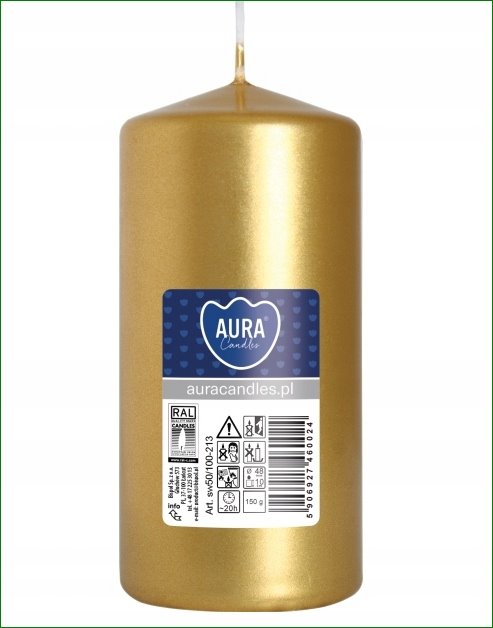 Świeca Walec Bispol Złoty Metalik 1 sztuka 5x10 cm
