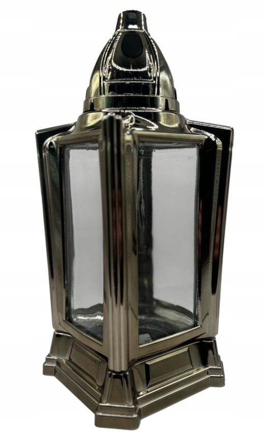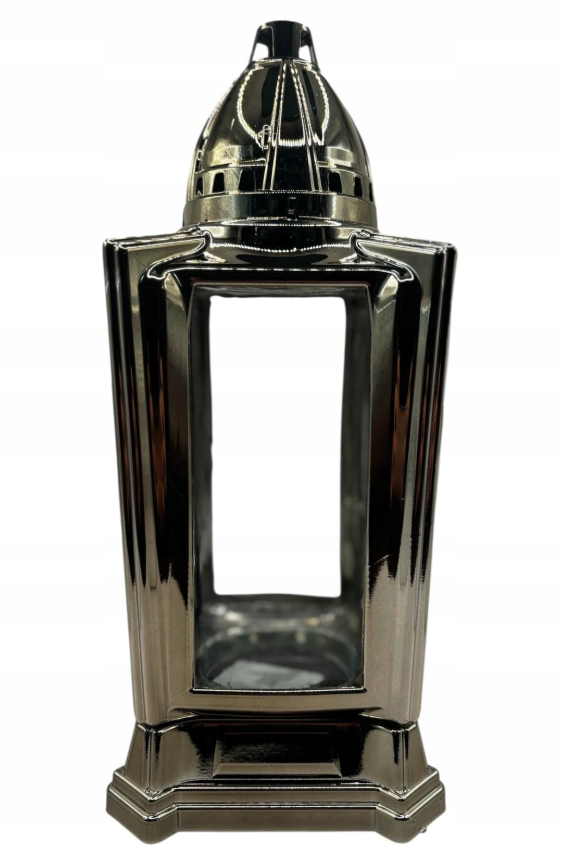 Elegancki znicz o wysokości 30 cm wykonany z wysokiej jakości szkła, idealny na grób bliskiej osoby. Klasyczny design w kolorze złotego połysku nadaje mu stylowy i ponadczasowy wygląd, który pięknie prezentuje się zarówno w dzień, jak i po zmroku.