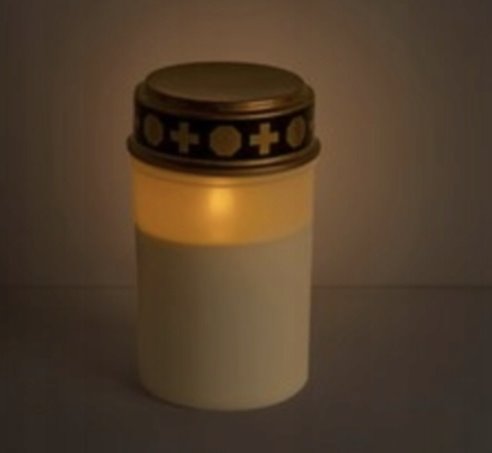 Nowoczesny znicz elektroniczny LED przeznaczony do użytku zewnętrznego na cmentarz. Wykonany z trwałego tworzywa sztucznego, odpornego na warunki atmosferyczne.