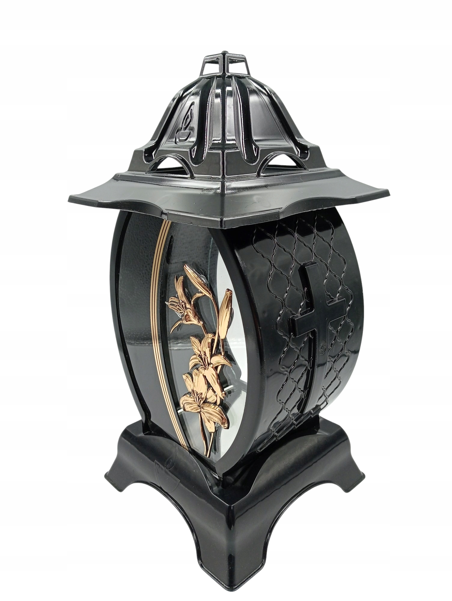 ZNICZ SZKLANY CZARNY ZŁOTY NOWOCZESNY NAGROBNY 33 CM ZŁOTA LILIA