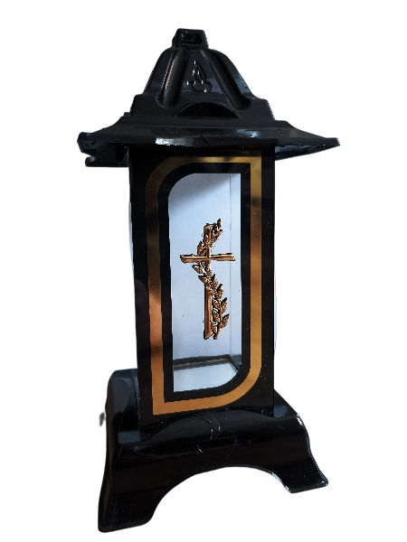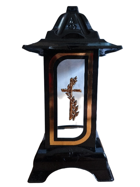 Prezentowany znicz to wyjątkowa kapliczka wykonana ze szkła i zdobiona eleganckimi złotymi akcentami. Centralnym punktem jest złoty krzyż – ponadczasowy symbol wiary, pamięci i nadziei na życie wieczne. To połączenie klasyki i elegancji sprawia, że znicz staje się nie tylko światłem pamięci, ale również piękną ozdobą grobu.