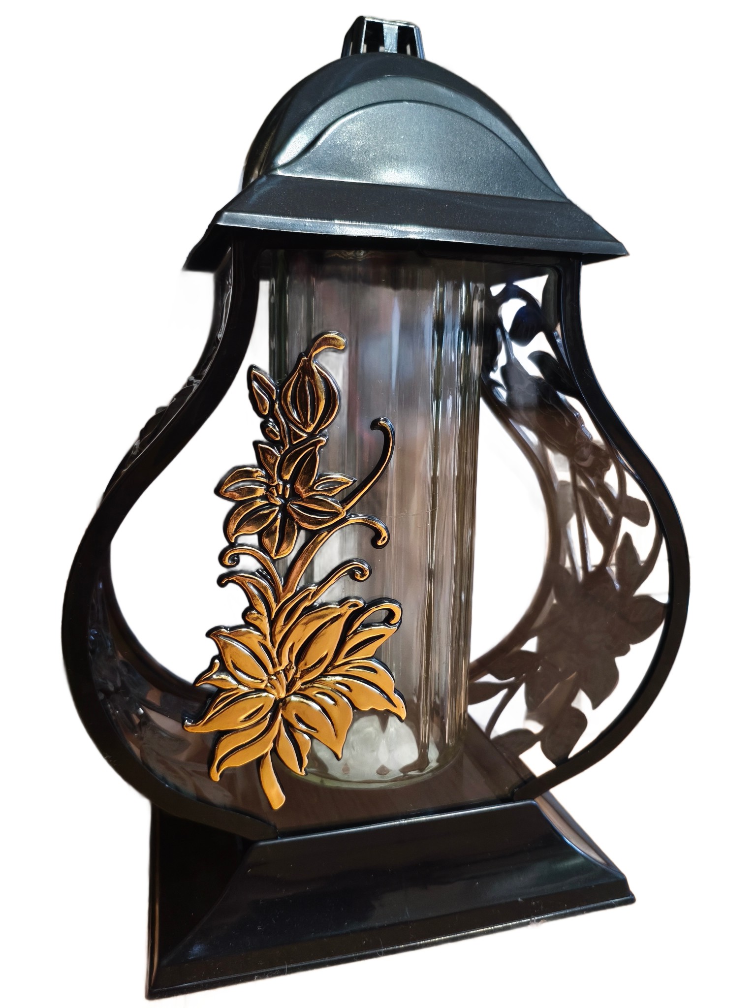 Wyjątkowy znicz w formie kapliczki, wykonany z wysokiej jakości szkła i ozdobiony złotymi kwiatami oraz aplikacją, to połączenie tradycji i elegancji. Bogate detale nadają mu wyjątkowy charakter, dzięki czemu doskonale podkreśla pamięć o bliskich.
