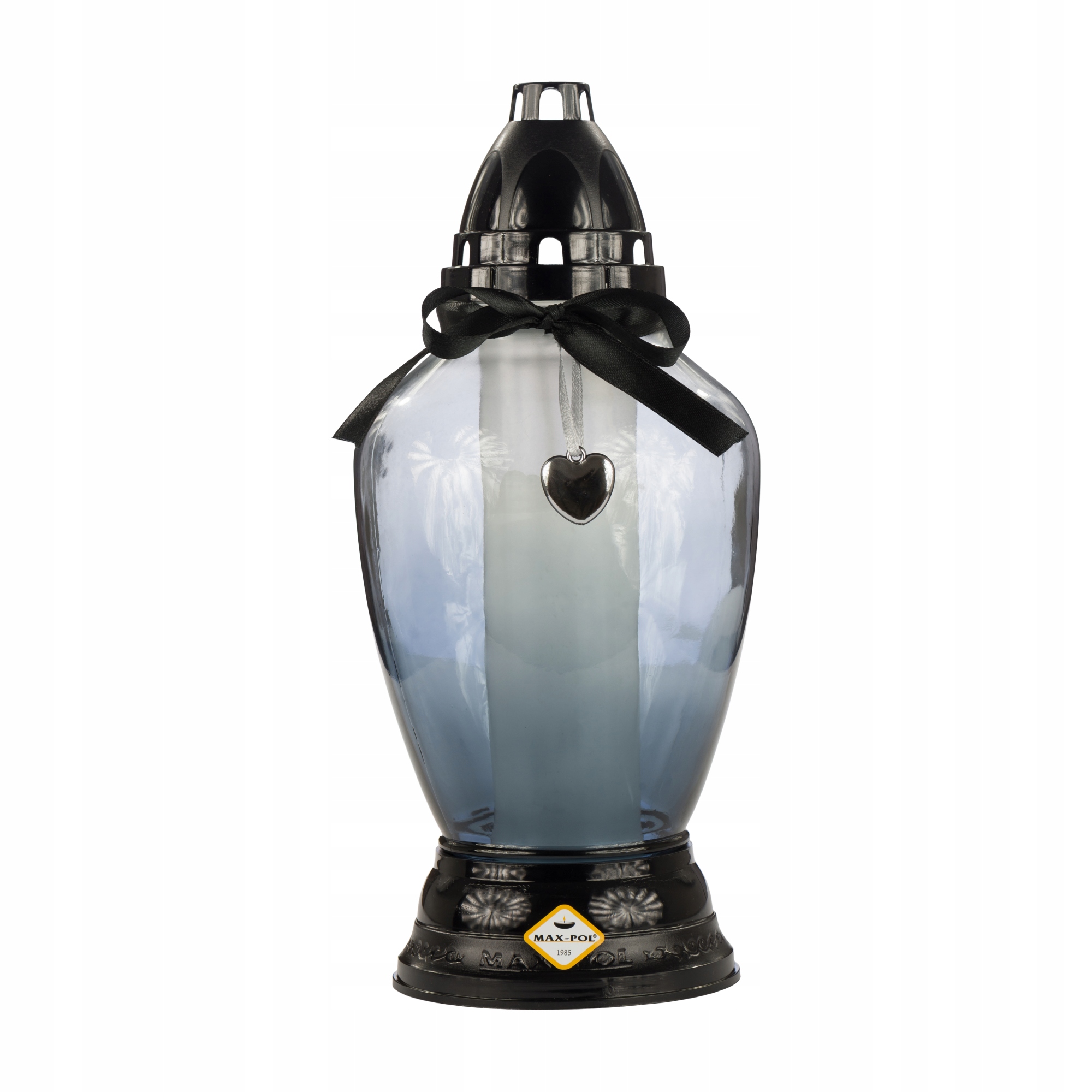 Znicz Szklany 1113 NT CZ GRAFIT 28 cm wys Wstążka z serduszkiem