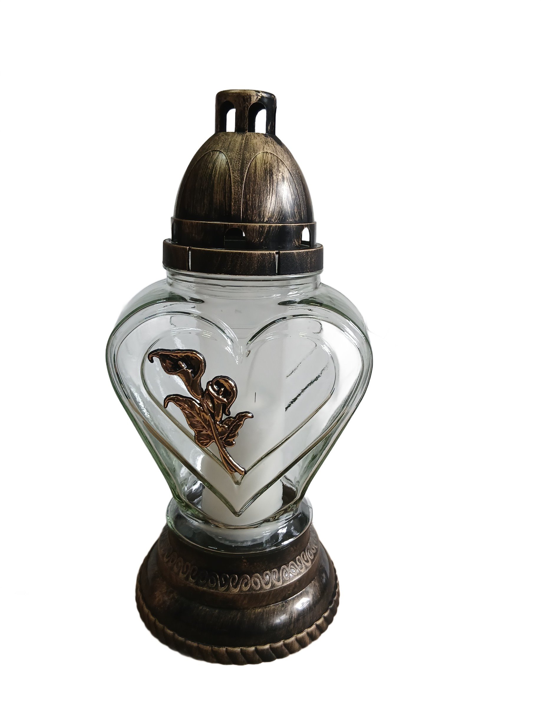 Znicz Szklany złoty ze złotą kalią – 33 cm