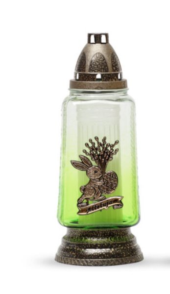 Znicz Wielkanocny z aplikacją zajączka w kolorze złotym.