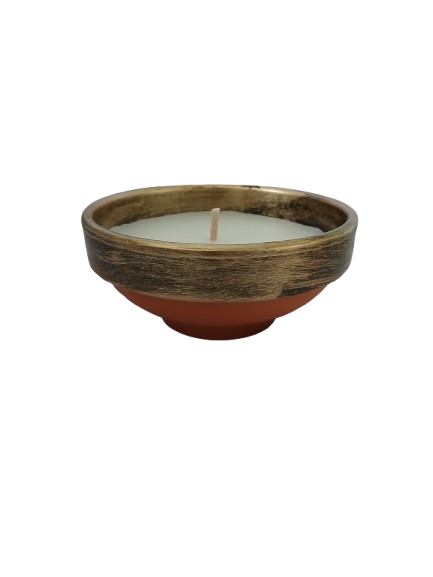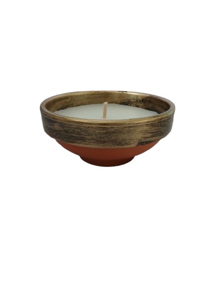Znicz zalewany parafinowy z złotym otokiem, podstawa gliniana.Czas palenia +-18 godzinNa środku znicza znajduje się 1 knotWysokość 7 cmSzerokość 15 cmSzerokość przy spodzie 8 cm