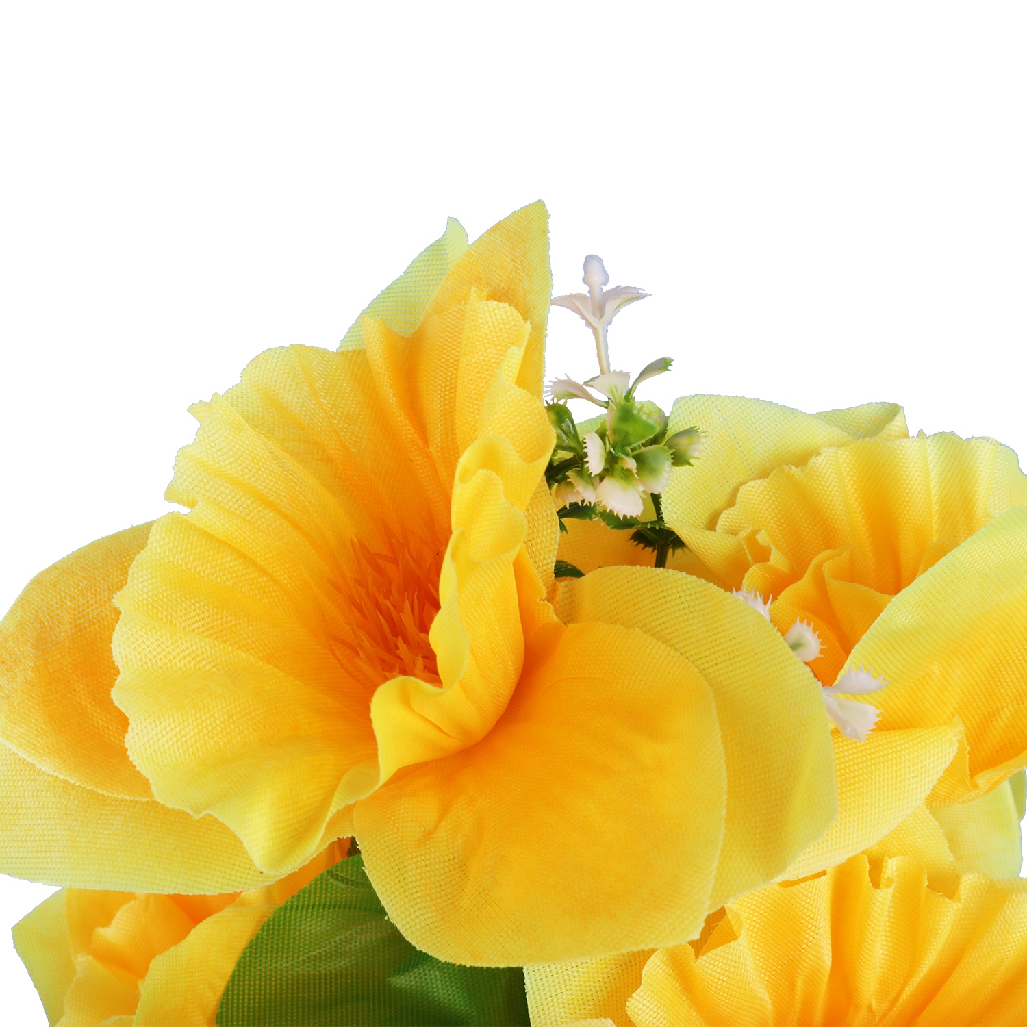 Wykonany z wysokiej jakości materiałów, bukiet imituje żywe kwiaty, co sprawia, że wygląda niezwykle realistycznie. O wysokości 40 cm, doskonale sprawdzi się jako samodzielny element ozdobny, a także w kompozycjach z innymi roślinami. Jego intensywny żółty kolor wprowadzi radość i świeżość do Twojego otoczenia, a brak konieczności podlewania i pielęgnacji sprawia, że jest to rozwiązanie zarówno estetyczne, jak i praktyczne. Idealny do dekoracji cmentarza, jak i na inne okazje, gdzie chcesz podkreślić wyjątkowy charakter miejsca