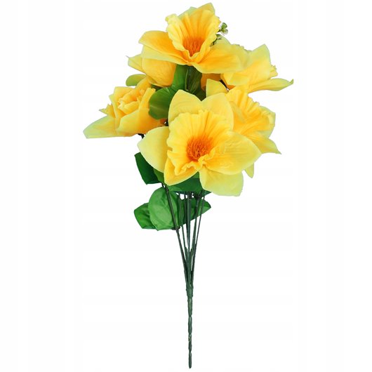 Bukiet sztucznych żonkili to elegancka dekoracja, która doda uroku każdemu wnętrzu. Składający się z dziewięciu starannie wykonanych żonkili, ten bukiet wyróżnia się wysoką jakością materiałów, które sprawiają, że kwiaty wyglądają jak żywe. Dzięki swojej realistycznej prezencji, bukiet sztucznych żonkili doskonale sprawdzi się jako samodzielna dekoracja lub wkomponowany w różne aranżacje, dodając świeżości i koloru. Idealnie udekoruje Twój stół, wiosenne kompozycje kwiatowe czy też przestrzeń na specjalne okazje. Oferowana wielkość bukietu to 40 cm, co czyni go wyrazistym elementem dekoracyjnym w każdym wnętrzu.